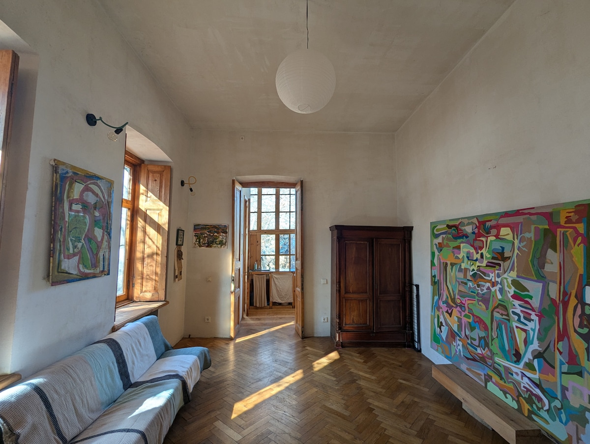 Ovaj stari dom u Tbilisiju prepun je svjetla, zelenila i onog posebnog šarma koji je sve teže pronaći u centru grada. Smještena u jednom od najtraženijih dijelova grada, udaljena je samo 260 metara od Avenije Rustaveli, glavnog bulevara Tbilisija, a muzeji, restorani i glavne znamenitosti su nadohvat ruke, ali je kuća ipak vrlo tiha i mirna. Uz visoke stropove, četiri prostrane sobe i privatni ulaz, osjećaj je kao u pravom domu.