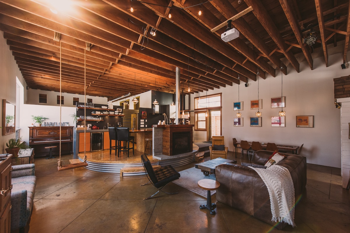 The Pink Pied-à-terre has a unique style with modern furniture juxtaposed against traditional architectural elements. This second story pied-à-terre is drenched in marble and gold from the kitchen to the bathroom. There is a spacious second story deck off the kitchen. It is very secluded, complete with a fire table to cozy up to. The Pied-à-terre is centrally located, it’s a few blocks from downtown and the river and one block from 20th street where all the hip restaurants are.