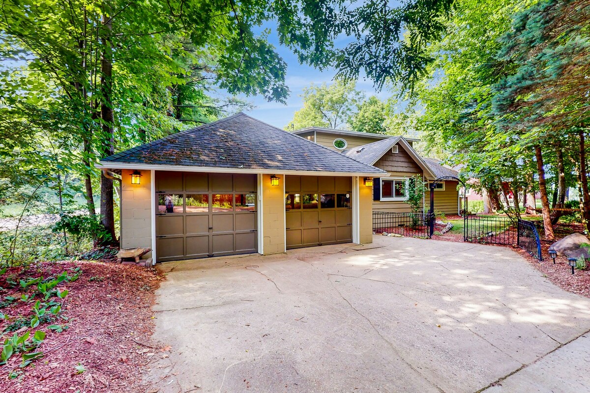 **NEW HOT TUB!** Welcome to our family retreat on Saddle Lake! Unwind at our 3B/3BA cozy lake house situated on a beautiful, wooded lot with 56 feet of private sandy beach just 20 min inland from South Haven. Enjoy the lake by day and relax by the fire at night. Have a great meal indoors or on relax on the deck while taking in some fresh air and the view. Curl up for a good nights sleep in our professionally laundered linens.