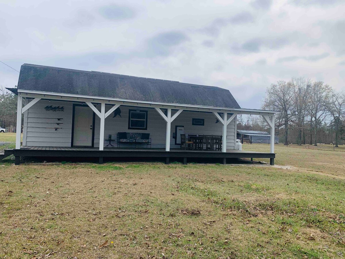 *Imajte na umu da je, iako je seoska kućica ista, šteta od uragana Helene drastično promijenila izgled objekta oko nje. Čišćenje je u toku, ali će potrajati.* Mirna, privatna seoska kućica od 850 kvadratnih metara udaljena od puta i okružena borovima loblolly. Uživajte u ovom mirnom odmoru samo za vas! Samo 5 minuta od I-20 i 20 minuta od W. Auguste (31 min od kursa Masters). Kuhinja je opremljena svim potrepštinama, kao i besplatnom kafom, čajem, jajima i još mnogo toga!