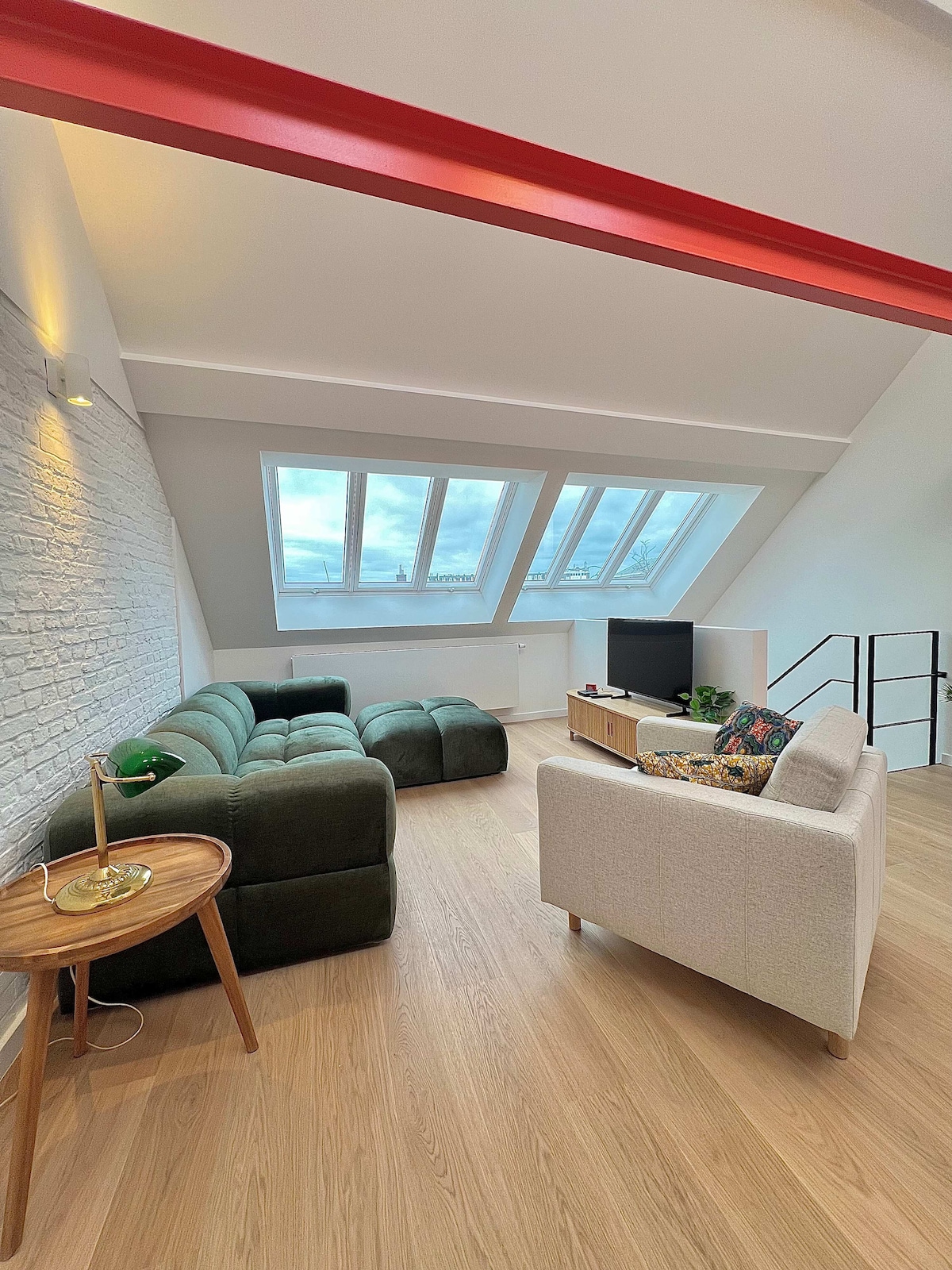 Rezervacije su dostupne isključivo za verifikovane profile s pozitivnim povratnim informacijama. Potkrovlje, 155 m², je preuređeno skladište izgrađeno 1924. godine. Nalazi se u zoni kanala, u blizini kultnog poslovnog centra Tour & Taxis i izložbenog kompleksa, koji je lako dostupan preko novouređenog parka. Nekada napuštena industrijska četvrt, Tour & Taxis sada prolazi kroz brzu i fascinantnu transformaciju, vođenu modernim društvenim principima i principima održivosti.