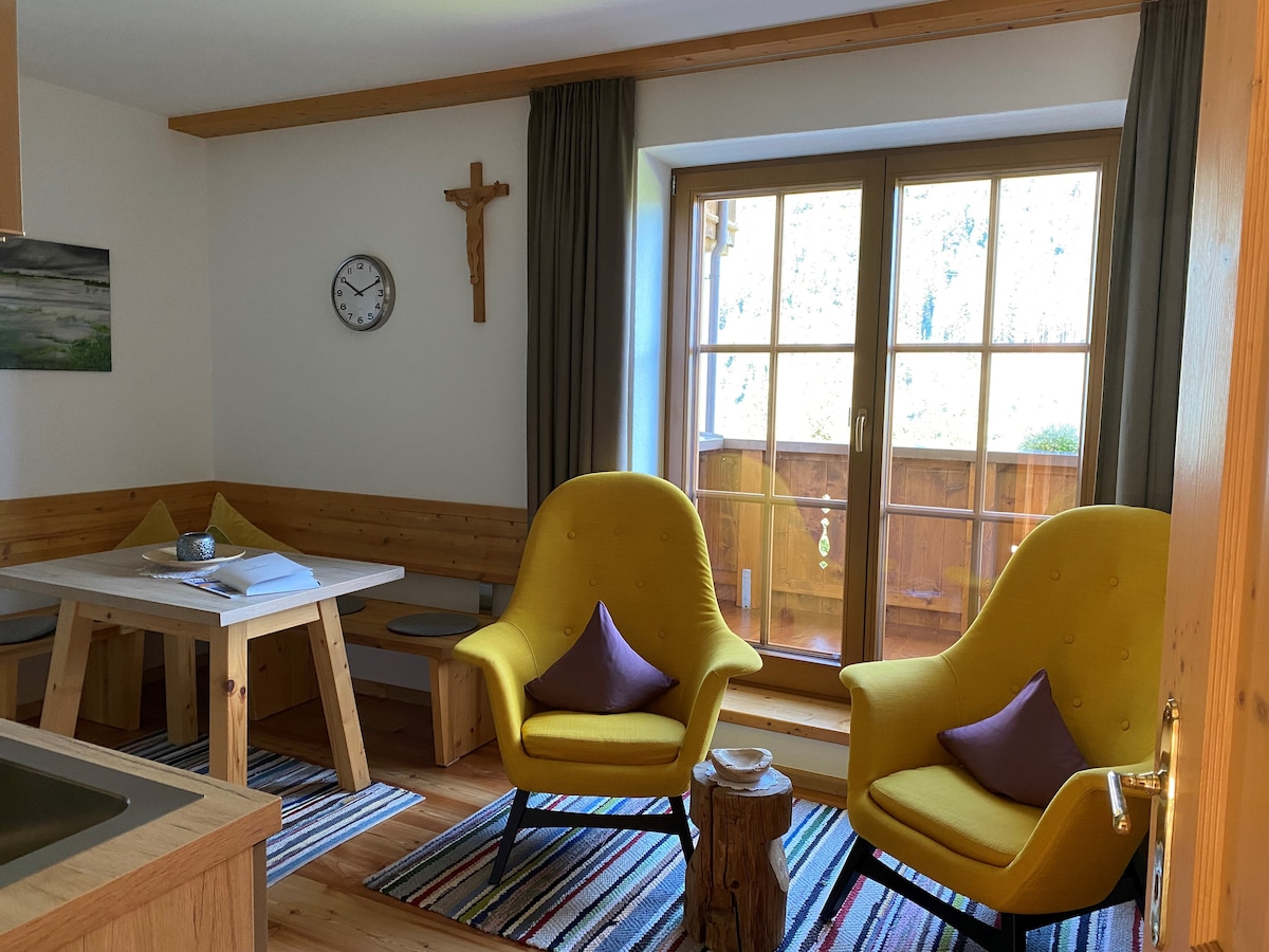 Novo!! Opustite se u ovom posebnom i mirnom smještaju prikladnom za porodice. Idealno za parove, porodice ili putnike koji putuju sami. U blizini pješačkih i skijaških područja (pješačka područja Karwendel na pragu - skijališta npr. Zillertal i Achensee itd.) Novi, visokokvalitetni objekat. Sauna, fitness, terasa, vrt. Vlastiti ulaz, besplatno parking mjesto za automobil, 2x TV, Netflix, Prime, besplatan Wi-Fi. Uživajte u prekrasnoj panorami i blizini najboljih mjesta u Tirolu. Dugoročni iznajmljivači su dobrodošli!