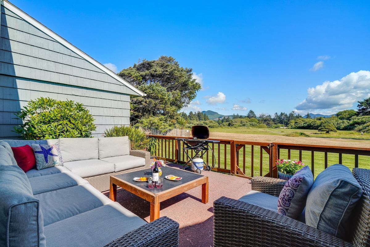 Gosti vole naš prilagođeni smještaj na terenu za golf, samo pola bloka od The Covea, omiljene plaže za surfanje i češljanje plaža u Seasideu u Oregonu. Ovaj jednoetažni smještaj ima otvoreni koncept s tri apartmana s bračnim krevetom. Lagan je, svijetao i ispunjen slikama okeana. Od plinskog kamina do gurmanske kuhinje, sve je novo. Na terasi se nalazi ograđeno dvorište sa stolicama Adirondack, masažnom kadom i roštiljem na propan. Osim toga, u garaži se nalazi igraonica.