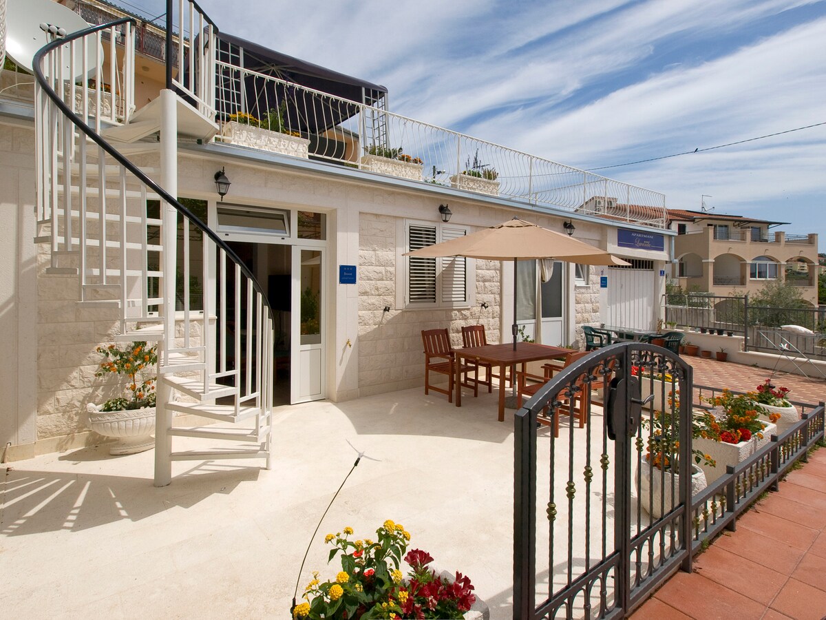 APARTMENT POSITION: *🏖 Beach - 600 m * 🛒 Supermarket- 90 m * 🥖 Bakery - 80 m * 🍴🍸Bars and restaurants - 600 m *🏫 Trogir - 4 km * 🏛 Split - 29 km * ✈️ Airport - 9 km * 🚌 Bus station - 5m APARTMENT FEATURES: * 🚲 4 BIKES INCLUDED !!! * 🗞 Beach towels included! * 🛅 100% privacy * 🌠 Brand new apartment * ❄️ AC (Air conditioner) * 🍖 Electric barbecue (grill) * 🔃 Elevator