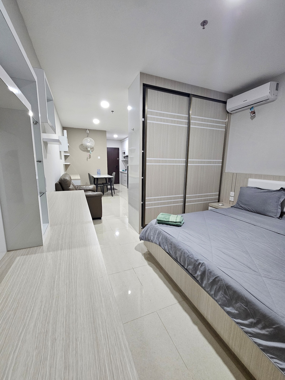 a Japanese Modern Style Studio Apartment in Pollux Tower 1 (Ausleen) 19th Floor City View Very strategic location in Batam; - 2 mins Fanindo Sanctuary Food Court (Marugame udon, Garuda Resto, Kfc, Starbucks, Mcdonald, etc) - 2 mins to Mitra Raya Food Center - 8 mins to One Batam Mall, Mega Mall, Batam Center Ferry Terminal - 25 mins to Hang Nadim International Airport - 20 mins to BCS Mall, Nagoya Hill, Grand Batam Mall