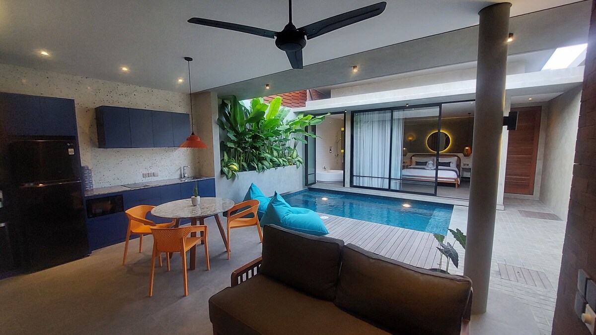 Wake up to the view of our tropical garden, as you slide open the glass doors to welcome the morning breeze. Enjoy breakfast in the open-air living area, and Lounge by the pool to soak up the sun. What to expect: 2BR with ensuite bathroom / open-air living area with equipped kitchen / Private pool with deck & sun lounges / High speed optic fiber Wifi / Cleaning 6 day per week / located in quiet residential neighbourhood in Seminyak / Concierge services, support & assistance 24-7 and more.