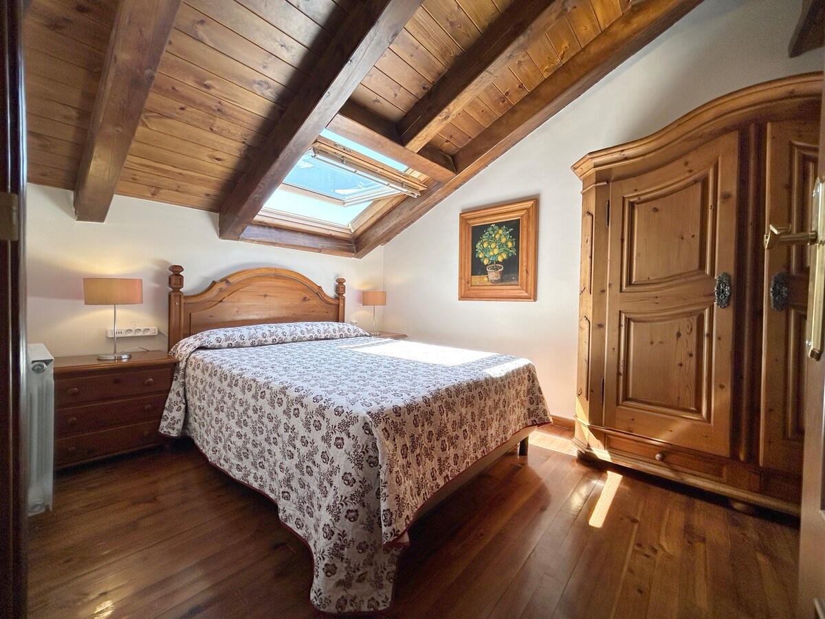 Uživajte i opustite se u mom udobnom dvoetažnom penthouseu s pogledom na Vielhu i njene spektakularne planine. Nalazi se 8 minuta od Vielhe pješice i 2 minute automobilom, penthouse nema parking, iako je u okruženju lako parkirati besplatno. Stan je vrlo svijetao, ima dvije sobe s kupatilom, opremljenu kuhinju, trpezariju s kaučem na razvlačenje i kaminom na drva. To je vrlo mirno područje, jer se kuća sastoji samo od dva sprata. Ima Wi-Fi.