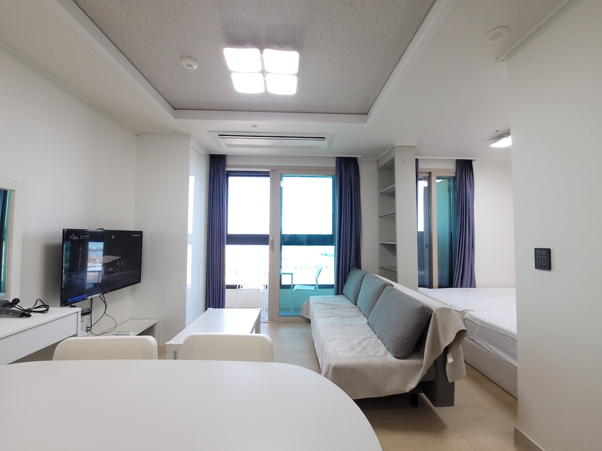 Novo otvoreno 28. jula,✨ 24. ✨Sve sobe s terasom i pogledom na okean Vrhunski Sealy kreveti za✨ vrhunsko opuštanje Svježa specijalna kafa u zrnu pržena direktno u poznatom kafiću u✨ Koreji (samostalno napravljena!) Nalazi se ✨odmah pored žičare Songdo, u blizini plaže Songdo ❤️Soba je nasumično dodijeljena, pa imajte na umu da se unutrašnjost i broj spratova mogu razlikovati od fotografija. 📺Elektronska oprema: TV s Netflixom (pomoću vlastitog korisničkog računa), besplatan Wi-Fi, pojedinačni klima-uređaj, pročišćivač zraka, zidni jastučić, frižider, Nespresso aparat za kafu, električno kuhalo za vodu, indukcija 🍳Kuhinjski pribor: osnovni pribor za kuhanje i pribor za jelo, čaše za vino, kuhinjski deterdžent i spužva 🛁Osnovna oprema u kupatilu: šampon, regenerator, gel za tuširanje, sapun za vodu, peškir, fen za kosu, sredstvo za ravnanje kose
