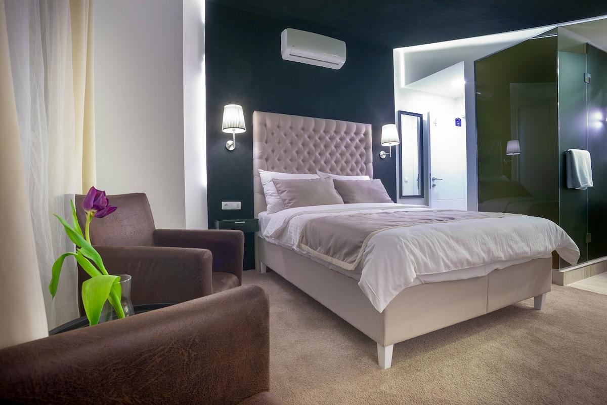 4rooms4u se nalaze u centru Beograda,u blizini Parlamenta,boemskog trga Skadarlija,pješačke zone Knez Mihajlova... Naš Butique Hotel ofer 4 Deluxe dvokrevetne sobe, ukupno za 8 gostiju. Sobe su udobne,udobne i moderno namještene... Opremljen bračnim krevetom i vlastitom kupaonicom s talijanskim mramorom,ručnicima,šamponom,sapunom, sušilom za kosu... Pogled na vrt pruža tišinu i mir,idealno mjesto za vaš odmor.