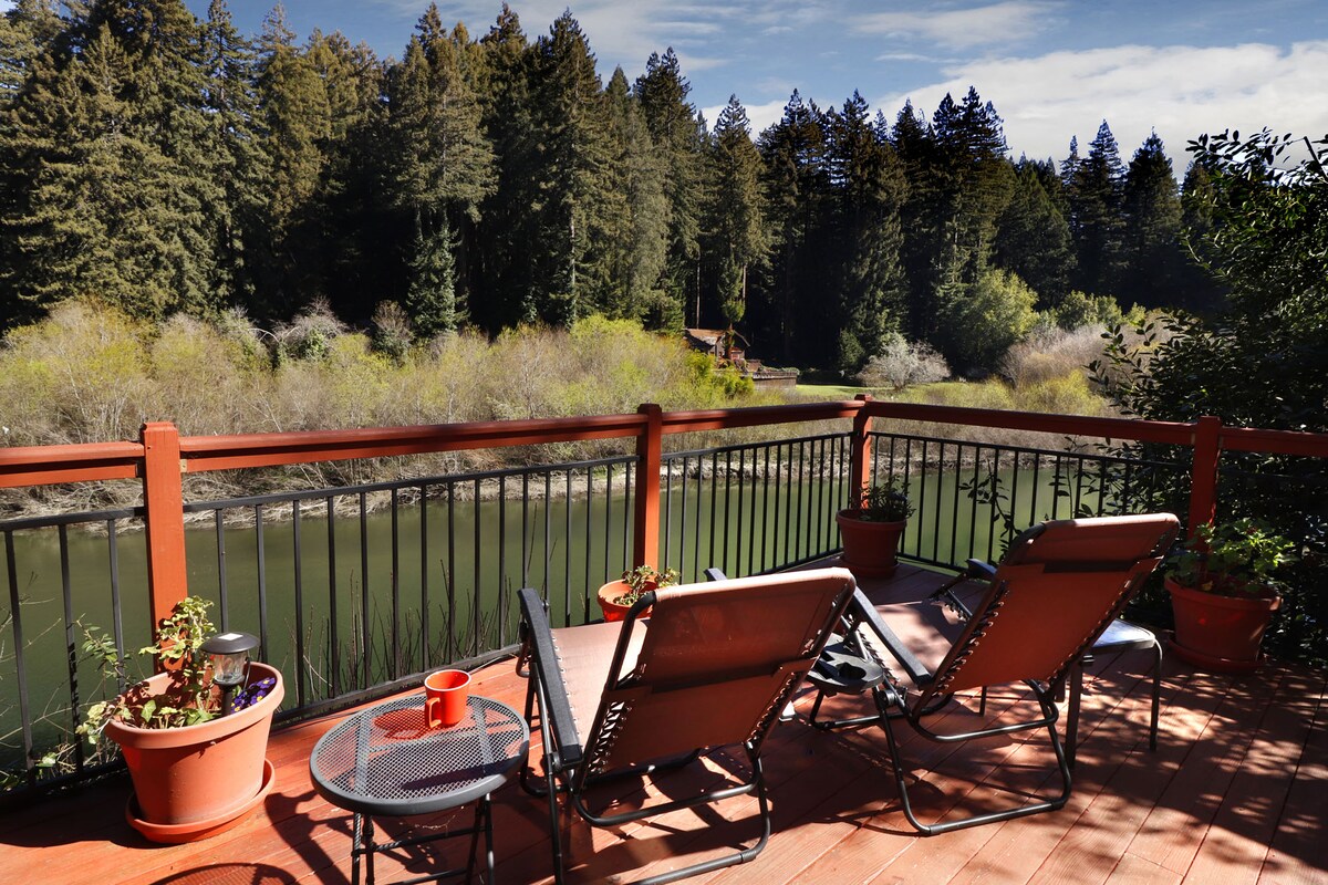 Osjetite hladan okeanski povjetarac dok se divite pogledu na ušće rijeke Ruske rijeke. Opustite se u mirnom i elegantnom okruženju. Uzmite svoje omiljeno piće i uživajte u ljepoti kalifornijske obale. Samo nekoliko koraka od Pacific Highwaya 1 i pješke do rijeke ili kratkom vožnjom do plaže Goat Rock. Osim toga, samo vas dijeli kratka šetnja Aquatica Caféom. *** Prije rezervisanja pročitajte cijeli opis oglasa ***