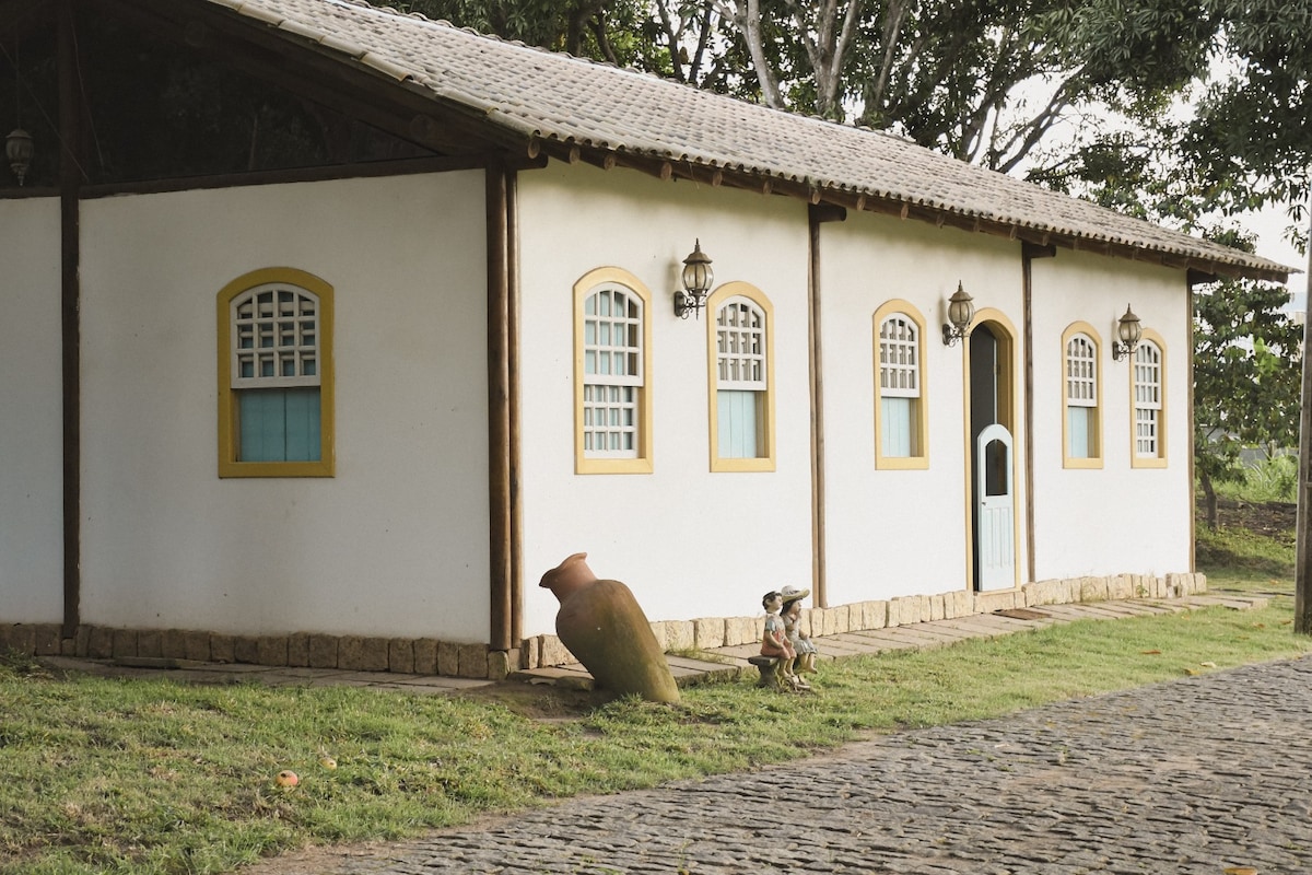 Colonial-style house (Paraty), with rustic furniture, barbecue area, and a 50,000-liter swimming pool. Details at: @haraspraiagrandees. We also clarify that, due to the house being built imitating the colonial era, it does not have a ceiling. This makes it much cooler, in addition to allowing guests to feel as if they were in an old house. We only accept families as guests. We have another house on the property with an internal and an external suite, also advertised on this website.