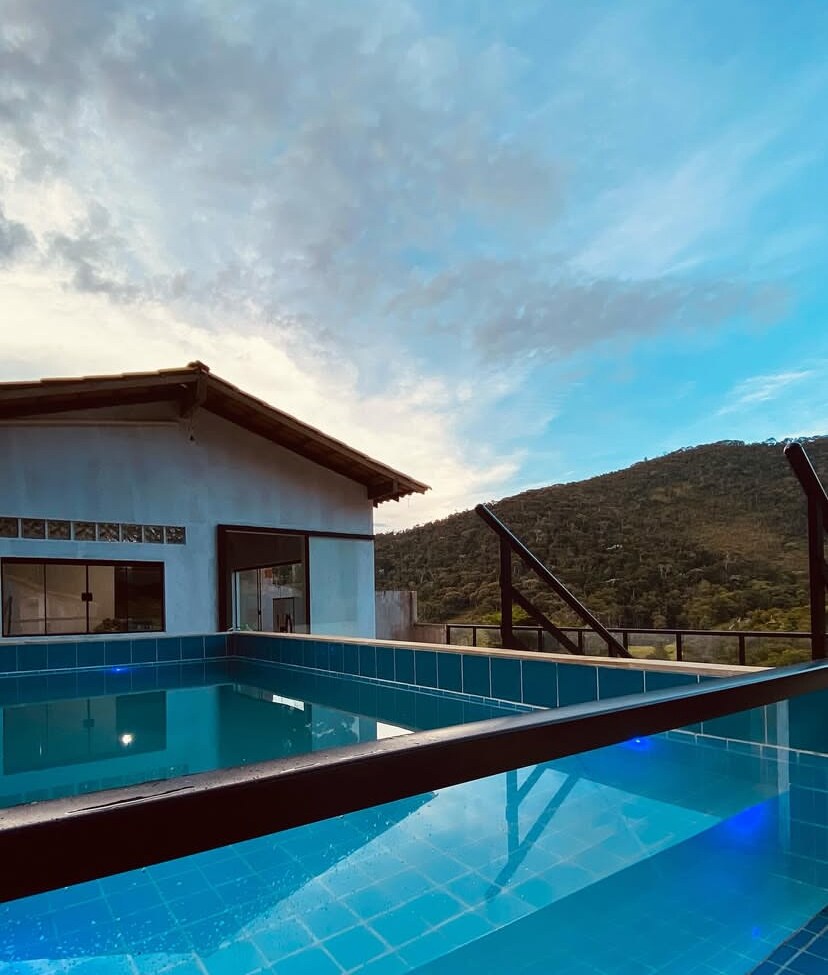 Refúgio na serra com piscina, vista e área gourmet