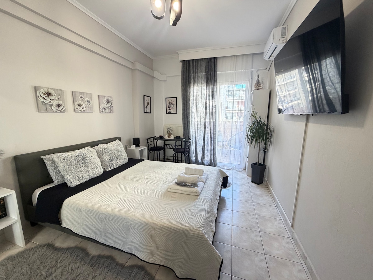 Dobro došli u „The Cozy Cine-Hub”! Potpuno renoviran, moderan studio, samo 400 metara od centra grada i stadiona Panserraikos. Idealno za uživanje u udobnosti i miru, sa svim potrepštinama na pješačkoj udaljenosti. Iako nudi i parking na gradilištu. Studio se ističe svojim 58’’ Smart TV-om, s pristupom Netflixu stvarajući filmski osjećaj, savršen za opuštanje. Dođite i uživajte u jedinstvenom boravku!