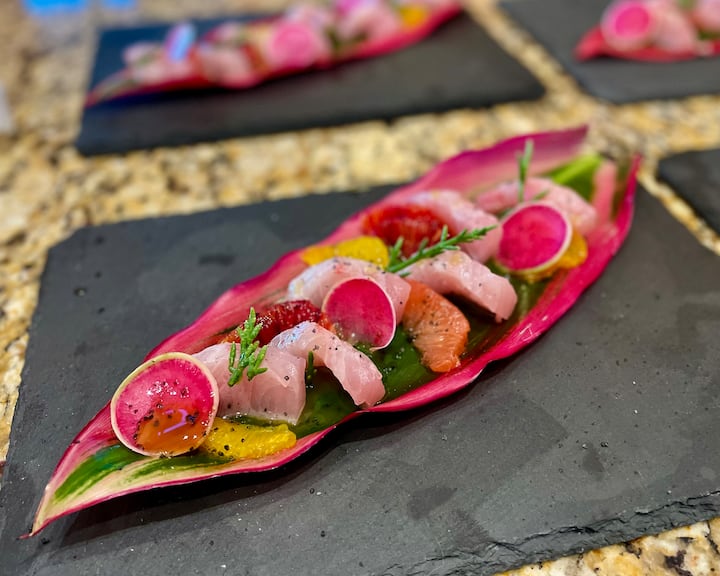 Gosti biraju između niza stavki menija kako bi kreirali personalizovani doživljaj objedovanja. Obrok uključuje više jela, od kojih je svaki pažljivo pripremljen.