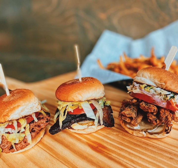 Meni grickalica za zabave Neutral Ground donosi odvažan, duševit okus na svako okupljanje. Uživajte u slajderima s dimljenim gljivama, vrućim kobasicama ili mesnim okruglicama, kao i mini dimljenim mesnim okruglicama od prsa i dimljenim pilećim krilcima sa svježim povrćem i domaćim sosovima. Uronite u dimljeni francuski umak od luka s čipsom ili Zaulook, sjevernoafrički umak od pečenog patlidžana i paradajza poslužen s ručno pravljenom pitom. Savršeno za dijeljenje, grickanje i zajedničko slavljenje.