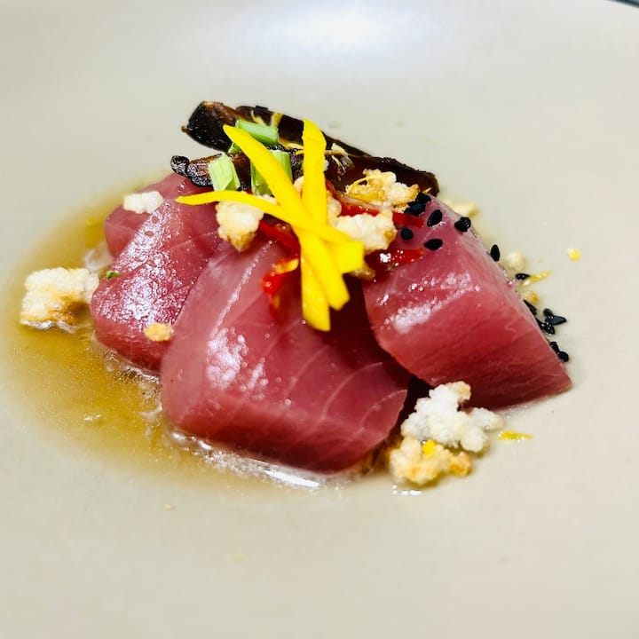 Doživite putovanje začina uz delikatnu supu od jastoga s naglaskom na pjenu od kafe i kardamoma, nakon čega slijedi izbor carpaccia od jakobovih kapica s limunskom travom i karamelom od čilija i badema ili nježnog janjećeg konfija s cimetom i kimom. Zaključite osvježavajućom desertom od breskve i kombave u kombinaciji sa sorbetom od đumbira.