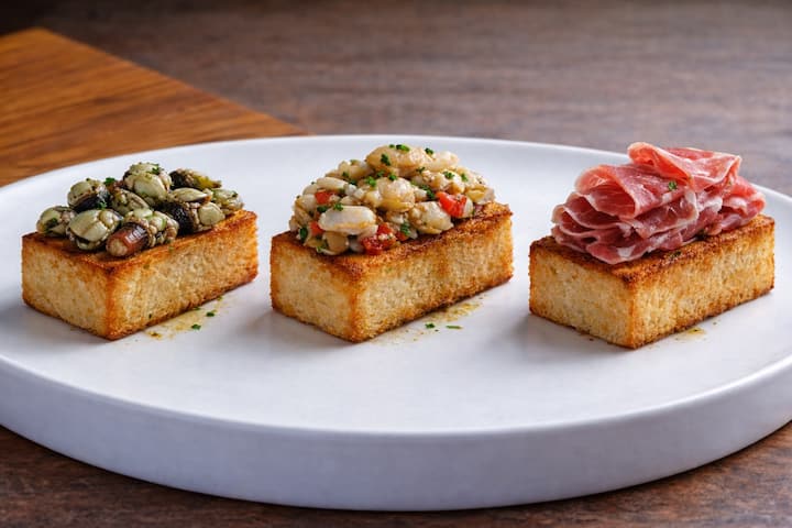 Amuse-bouche: Trikini na briošu (tartar od teletine, tartar od tune, tartar od jakobove kapice)