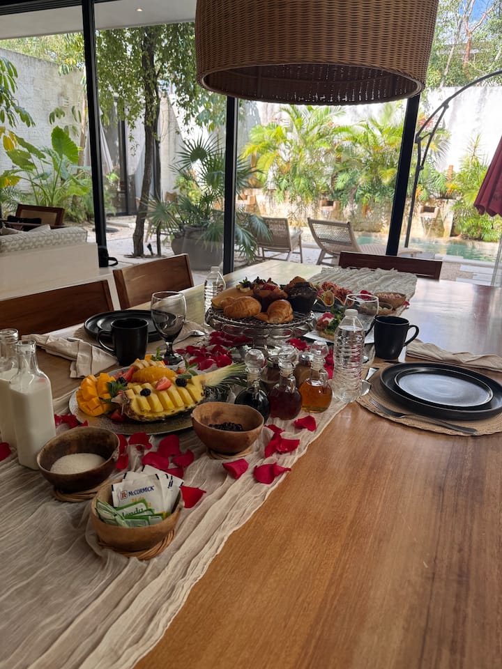 Doživite jedinstven početak dana vrijedan fotografije uz naš plutajući doručak u vašem privatnom bazenu. Elegantna poslužavnik stiže plutajući s ponudom svježih i ukusnih jela. To je iskustvo luksuza i mira, savršeno za parove ili male grupe koji traže nezaboravan trenutak. Najljepši i najopuštajući način da uživate u doručku u Tulumu.