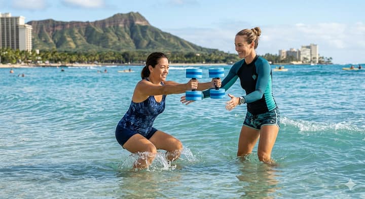 Trening snage u vodi u oceanu, osmišljen za jačanje snage, stabilnosti i pokretljivosti uz istovremeno smanjenje opterećenja zglobova.