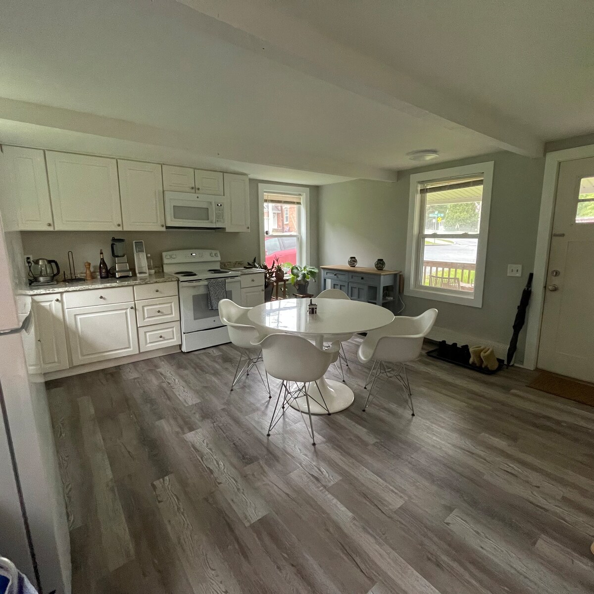 Dobro došli i uživajte u našoj renoviranoj gostinjskoj kući u Leeju, MA, boraveći na glavnoj ulici (15 minuta od Great Barringtona i 20 minuta od Pittsfielda). Također je 3 minute do Outleta i 19 minuta do najbližeg skijališta. Glavna spavaća soba ima mekani madrac veličine Queen, a druga spavaća soba ima i bračni krevet. Kuhinja ima potpuno novi frižider, plinski štednjak i jedinice za kuhanje. Uživat ćete u udobnom boravku! Vlasnici žive na spratu i ljubazni su prema svim posjetama.
