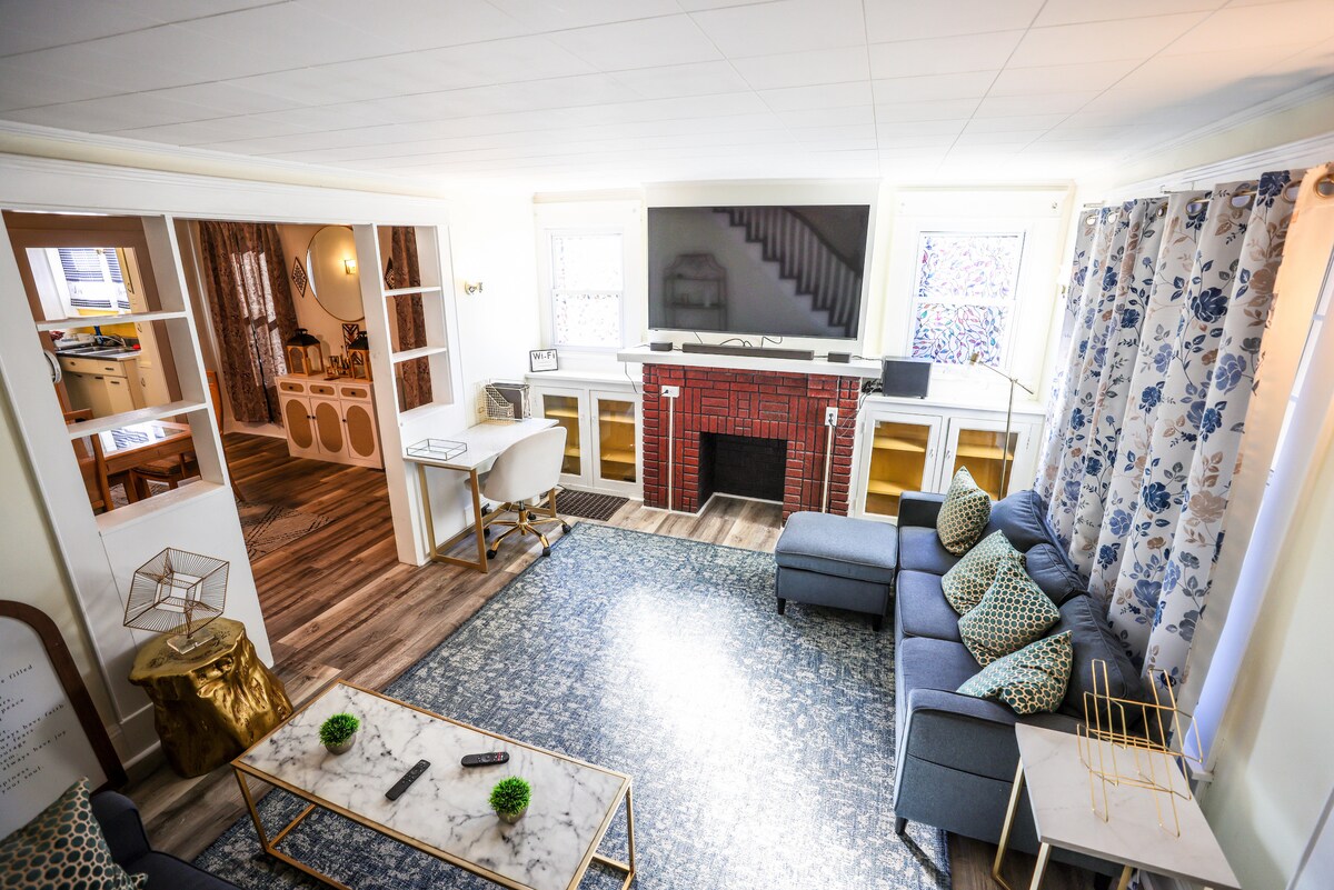 With cozy cabin vibes, exposed brick, and designer touches, this romantic getaway is perfect for couples or a relaxing stay. Escape to a rustic-modern retreat in the heart of Lawrenceville, just one block from Butler Street! Unwind in the private hot tub, snuggle up on the couch by the fireplace, or explore the city's best dining and nightlife just steps away. Completely remodeled in January 2025 with luxe amenities—book now for an unforgettable stay!
