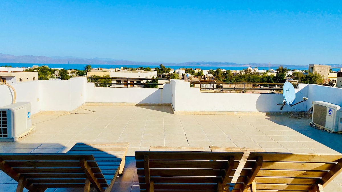Uživajte u jednostavnom pristupu iz ovog centralno smještenog apartmana, 3 minute hoda do plaže i kafića Farsha! Ikea namještaj, uključujući 1 kauč na razvlačenje + 2 kreveta za jednu osobu + 1 bračni krevet, besplatan neograničen Wi-Fi, TV. Potpuno opremljena kuhinja na udobiteljskom mirnom mjestu u privatnoj vili! Stan se nalazi u Hadabi u centru Sharm el Sheikha. Šta je u blizini : - Najbolja plaža/kafić u Sharmu (FARSHA CAFE) - 2 min hoda - Supermarket, restorani, apoteka - 5 minuta hoda - Stara tržnica – 20 minuta hoda - Zaliv Na'ama – 15 minuta vožnje