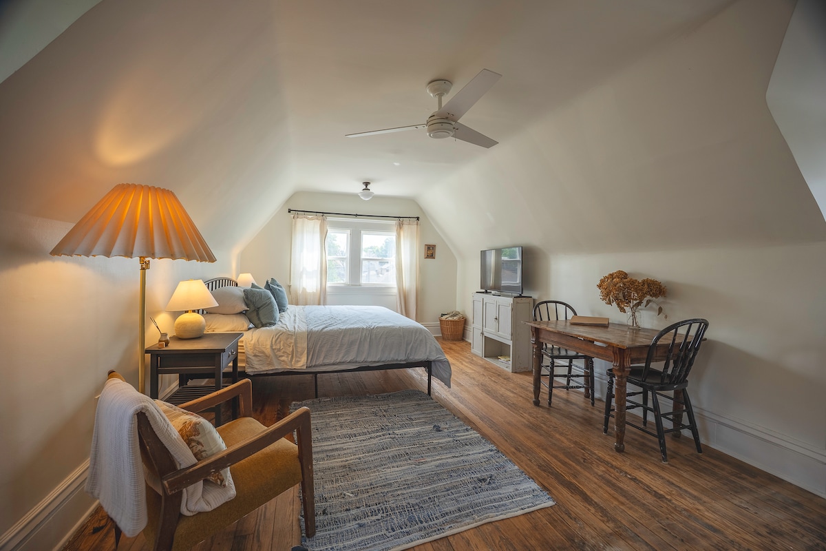 Stylish 2BR Suite • Walk to Downtown + King Bed