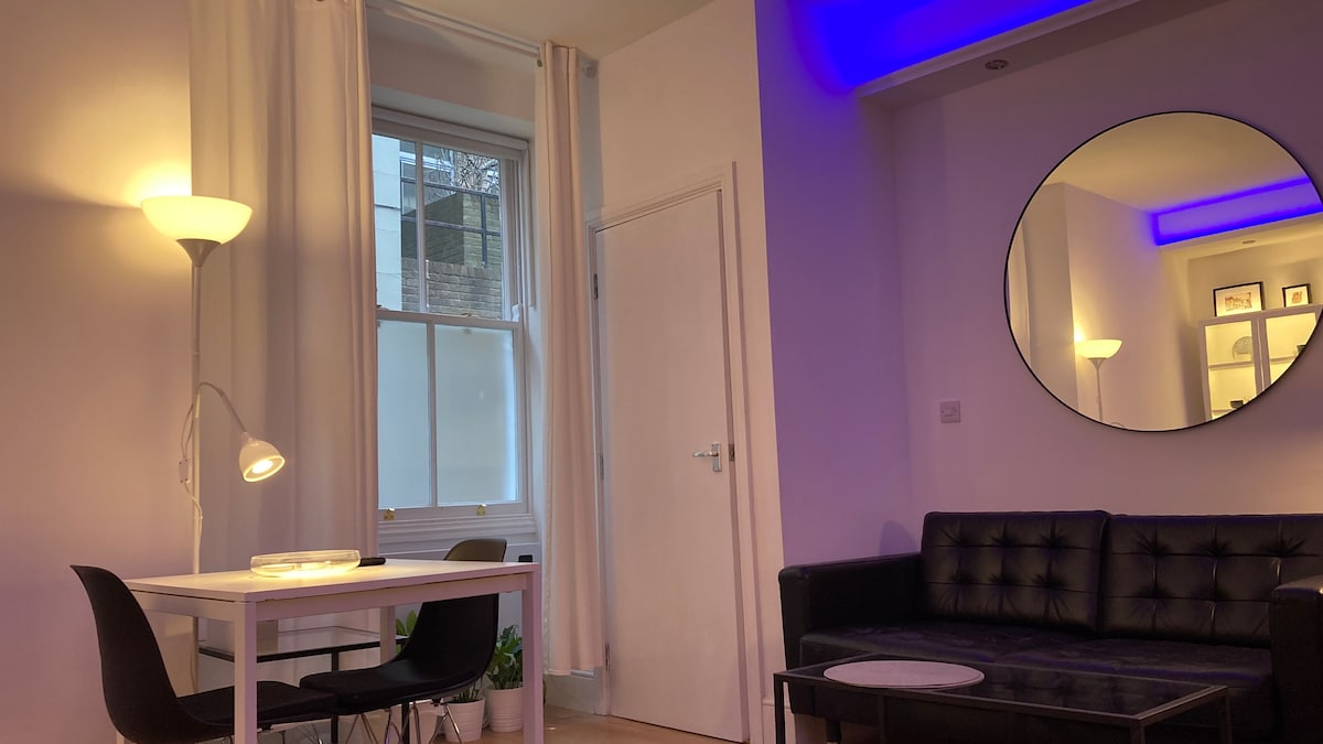 Warm welcome to a stylish stay at this centrally-located apartment. You have use of the entire newly converted apartment in the historic Cathedral Quarter of Sheffield. This apartment is set off a quiet pedestrian flagstone lane. Feature lighting means you can change the colour of the cosy ground floor apartment. This is a short 10 mins walk to the train station. The flat is 2 minutes walk from the Cathedral tram stop that takes you directly to Sheffield Utilita Arena for concerts!