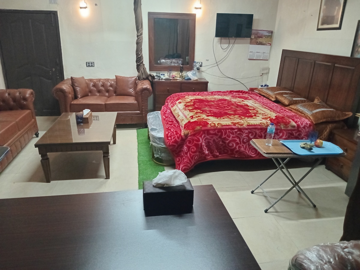 1 krevet Potpuno namješten stan (klima uređaj, Ups Backup, uredan i čist) s malom kancelarijom u centru Lahorea, dostupno za kraći i duži boravak.