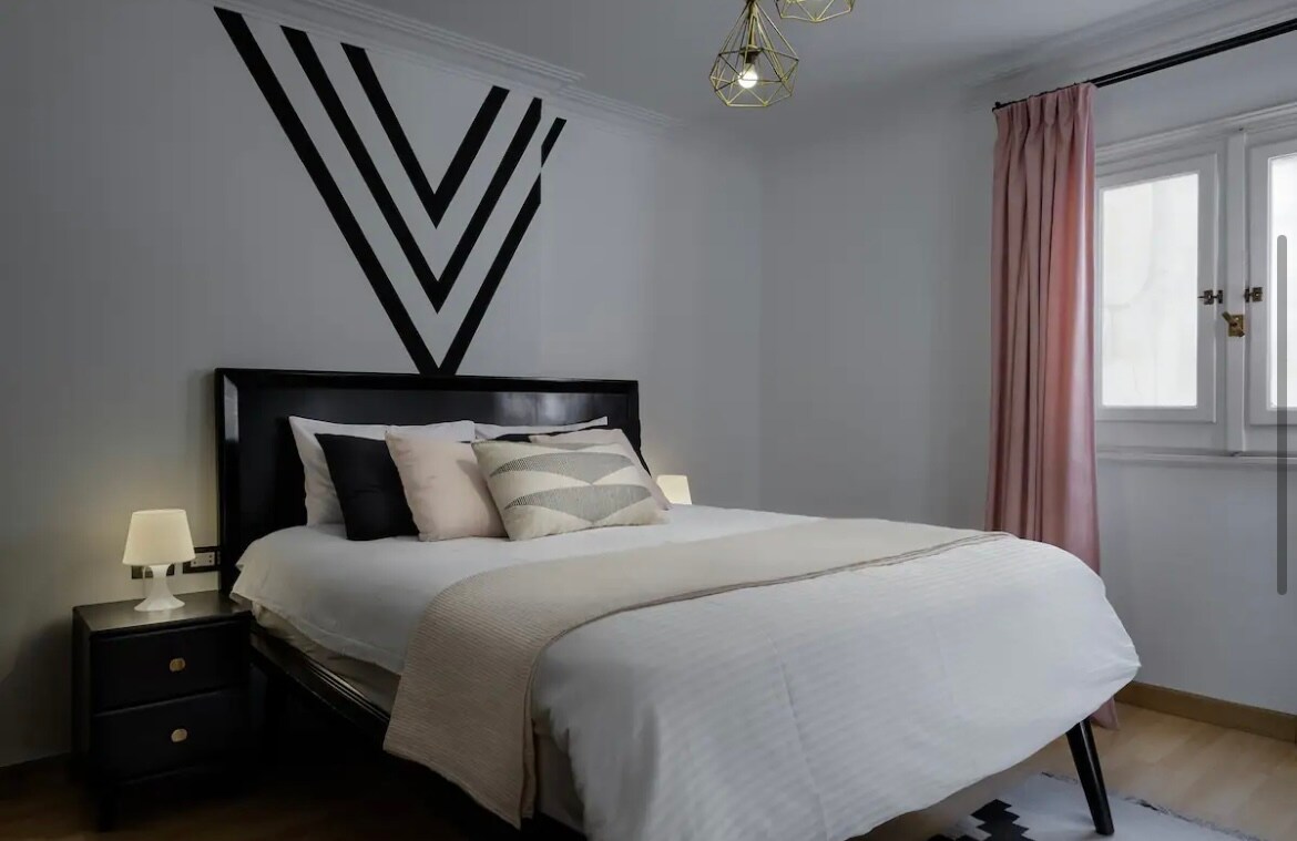 Otkrijte naš dragulj s 1 spavaćom sobom u kompleksu Golden Gates - 5 minuta do Maadija, 10 minuta do New Caira i Nasr Cityja, 15 minuta od aerodroma u Kairu i Heliopolisa. Potpuno opremljena američka kuhinja, elegantna mješavina modernih i boho vibracija. Uživajte u pogledu na vrt, sigurnosti 0-24 i sadržajima u sklopu objekta kao što su kafići, restorani, Carrefour Hyper Market, pa čak i bolnica. Opustite se uz 65-inčni pametni TV, zajedno s uslugama streaminga i ostanite povezani s brzim Wi-Fi mrežom. Vaša avantura u Kairu počinje ovdje!