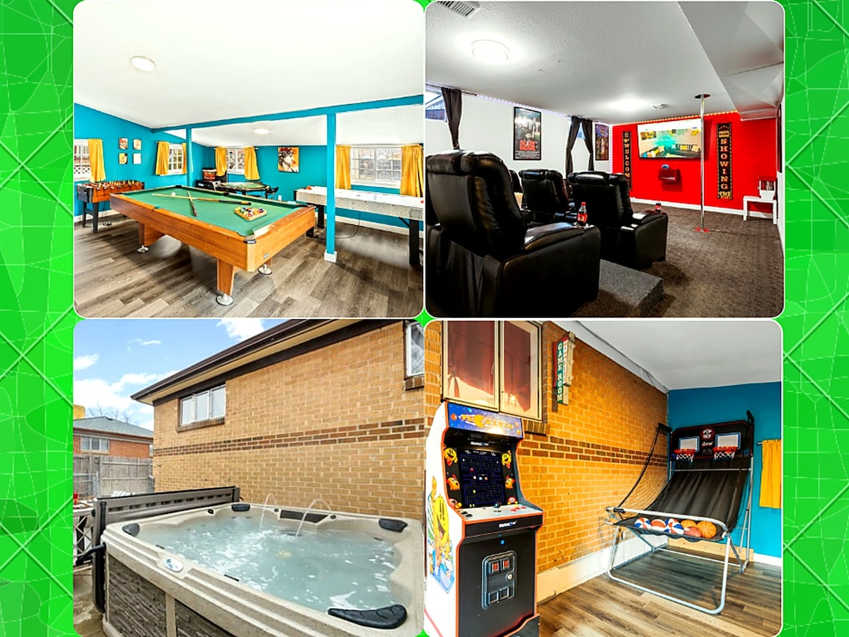 🏡🌿 KushKations Quivas: 420friendly 5BR/2BA w/ 6-seat recliner theater+PS5+dance pole. 🎮🎱 Game space: slate pool table, air hockey, foosball, poker+mini hoops+Pac-Mania arcade. ♨️🌳 Private fenced backyard w/ hot tub+propane grill+outdoor seating & dining. 🏙️🚆 Downtown/Union Station:15 min. 🏰🎨 Meow Wolf Denver:13 min. 🥅⚾ Coors Field:10 min. 🏟️🎶 Ball Arena:12 min. 🏈🏟️ Empower Field:10 min. 🎭🎨 RiNo Arts District:13 min. 🎸🏔️ Red Rocks Amphitheatre:20 min. 🛫🚗 DIA:20 min.