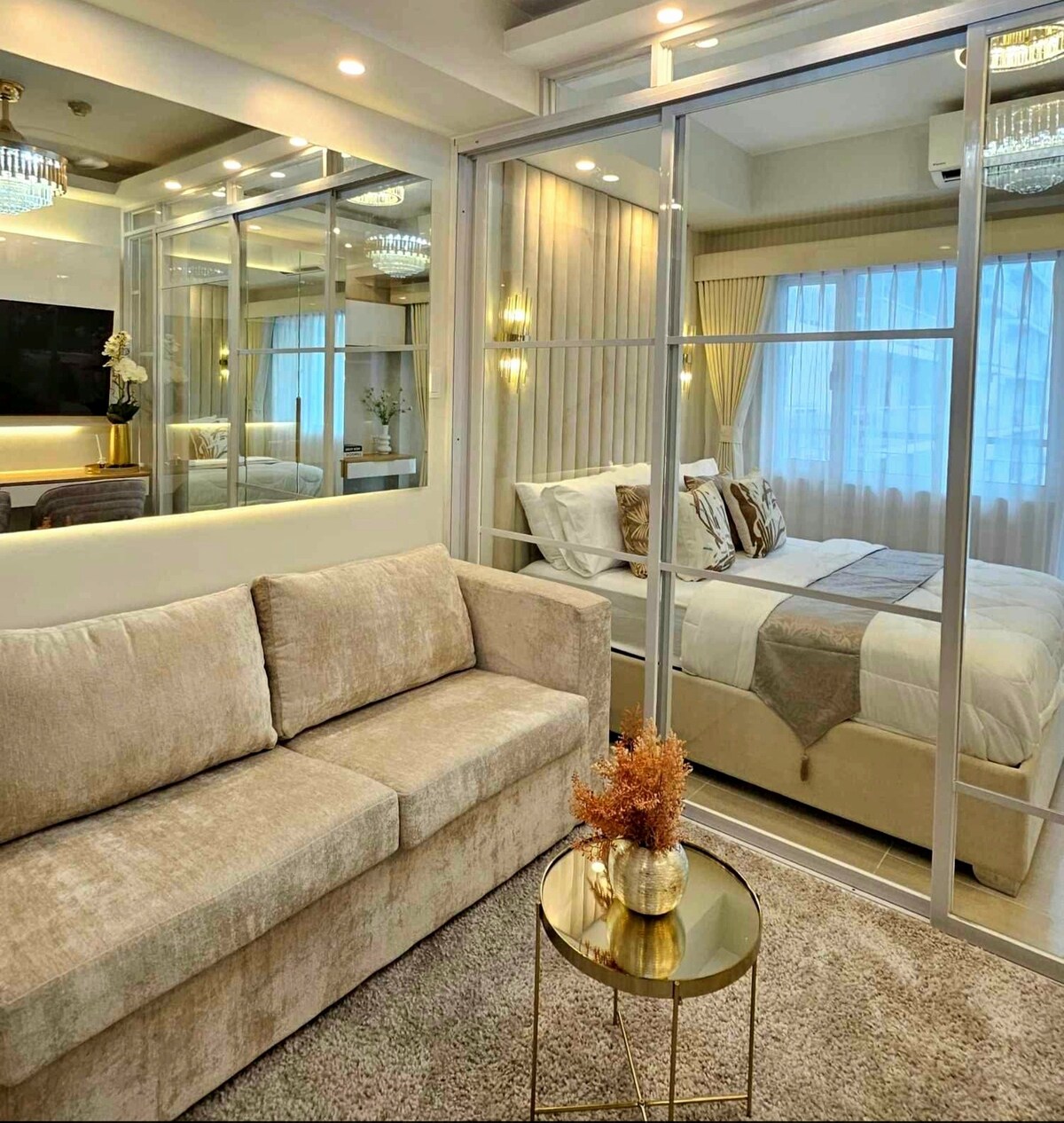 Doživite naš ultraluks i udoban, 32 m2 1BR s balkonom (pogled na bazen) u Shore 3 Residences, neposredno ispred Moa i udaljen je samo 4,5 km od NAIA-e! Uz 1-65” SmartTV (dnevni boravak rm), 1-40"SmartTV (spavaća soba), WI-FI od 200 MBps, Utube i Netflix, bračni krevet, kauč, klima-uređaj u spavaćim sobama i dnevnom boravku i Nespresso aparat samo su neke od stvari u kojima smo velikodušno opremili ovu jedinicu i u kojima možete uživati!