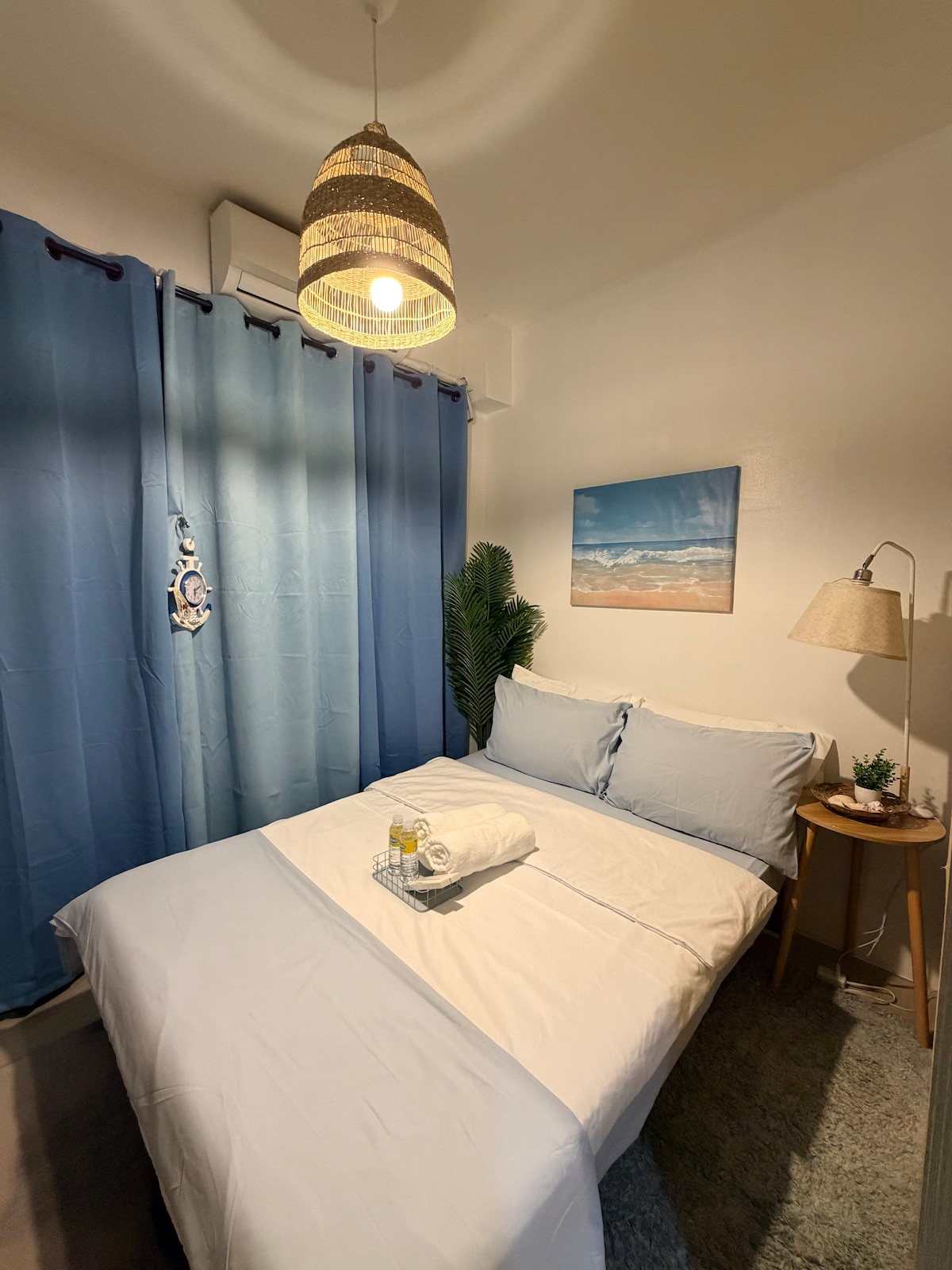 Dobro došli na svoje još jedno novo omiljeno putovanje! Šarmantno Rustic-Boho utočište koje je odmah postalo omiljeno gostima; sada nudi novi nivo opuštanja i udobnosti. Prekrasno uređena spavaća soba koja spaja šarm Rustic-Bohoa s egzotičnom privlačnošću Balija. Ovo privlačno utočište kombinuje tople, prirodne elemente rustikalnog dizajna sa živopisnom, tropskom suštinom balijskog dekora, stvarajući zaista jedinstveno i mirno utočište. Lokacija: Shore Residences, Tower D, Moa Pasay, Filipini