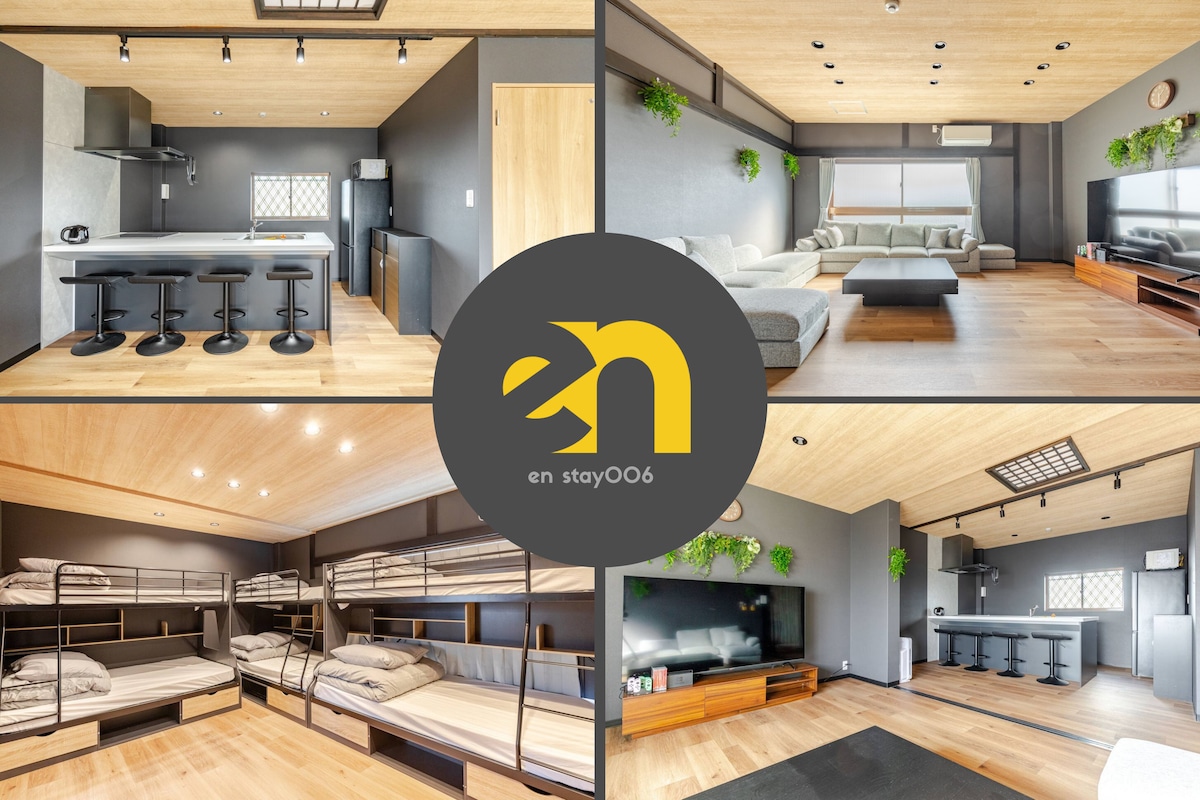 Opustite se u našem šarmantnom 2LDK privatnom prostoru! Direktno dostupno s aerodroma Kansai, Nambe, tržnice Kuromon i Umede. Područje Tennoji je dostupno pješice, a USJ je udaljen samo 30 minuta. Doživite ono najbolje od Osake ovdje! Uživajte u lokalnim restoranima, obližnjem FamilyMartu i parkingu za kovanice. Reproducirajte Nintendo Uključite TV od 70 inča ili prenosite svoje favorite (potrebni su računi gostiju). Kuhajte u opremljenoj kuhinji (bez začina). U našoj prostranoj sobi može udobno spavati 9 osoba s dva kreveta na sprat. Kontaktirajte nas u bilo kojem trenutku ako imate pitanja!