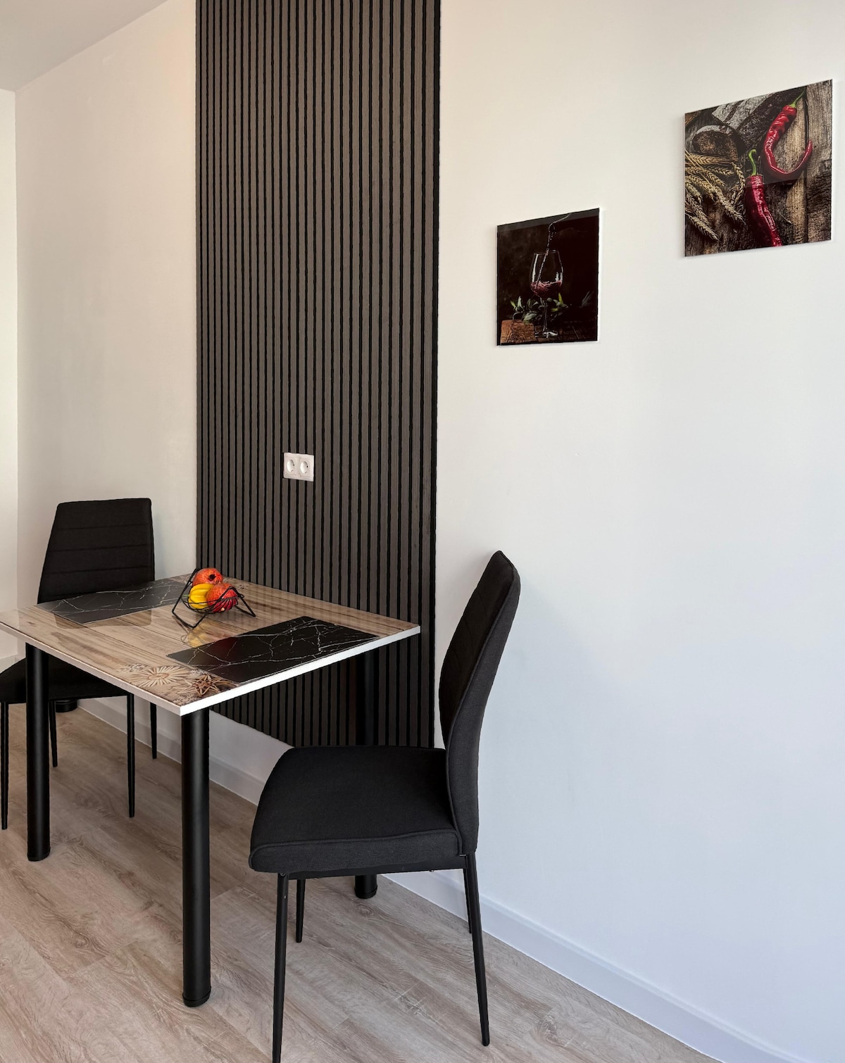 Elegantan bijeg s gradskom atmosferom. Ima moderan, minimalistički dizajn s toplim detaljima, udoban, lebdeći krevet s LED rasvjetom, potpuno opremljenu kuhinju i privatni balkon gdje se možete opustiti.