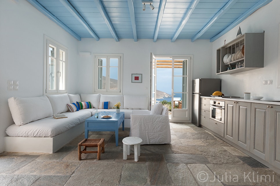 ASPES #3 | Ammos is one of 4 beautiful independent houses, built on the rock, perfectly in tune with the environment, with an exclusive view of the unique blue of the Aegean sea. It boasts a privileged location, right over Psili Ammos beach (award winning beach), which is either a 3min drive or a 12 min walk