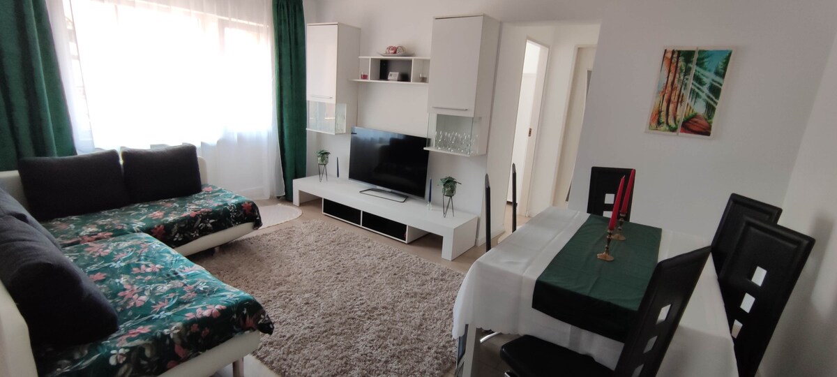 Naš stan vas čeka u svijetlom, modernom i nedavno renoviranom prostoru opremljenom plinskim grijanjem. Nalazi se u mirnom području, u blizini centra grada, velikih prodavnica, bolnice, apoteka, parka. Prikladno za boravak od nekoliko dana ili dužih perioda. Ima glavnu spavaću sobu, jednu spavaću sobu, otvoreni dnevni boravak s fiksnim kaučem, kuhinju, moderno kupatilo, hodnik. Blok je nedavno renoviran i termički obnovljen.