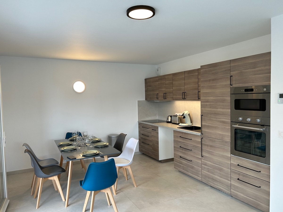 Situé à Tallard, dans un lotissement calme, logement neuf de 30m2 comprenant 1 chambre, 1 SDB, et un salon cuisine donnant sur un jardin avec table et BBQ. Endroit calme et de détente. Logement de 1 à 4 personnes. Nous pouvons fournir le nécessaire pour les bébés et enfants. Proche de toutes les commodités de Tallard 7 min à pied et à 3 min en voiture de l’intermarché, de l’aérodrome. 15 min de gap. Nous acceptons les animaux de compagnie propres et calmes.