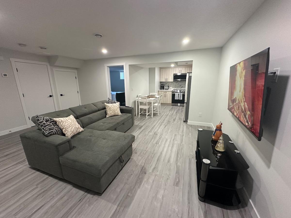 Dobro došli u naš mirni dom koji se nalazi u South Calgaryju, samo 20 minuta od centra grada i oko sat vremena vožnje do Banffa. U blizini ćete pronaći dva velika tržna centra, farme, parkove i mjesta za piknik savršena za istraživanje porodice ili prijatelja. Ovaj prostor ima dvije spavaće sobe, jedno kupatilo, mokri bar, mini frižider, mikrovalnu pećnicu, toster, aparat za kafu i osnovne kuhinjske alate. Uživajte u besplatnom Wi-Fi i pametnom TV-u tokom boravka. Nadamo se da ćete ovdje stvoriti divne uspomene!