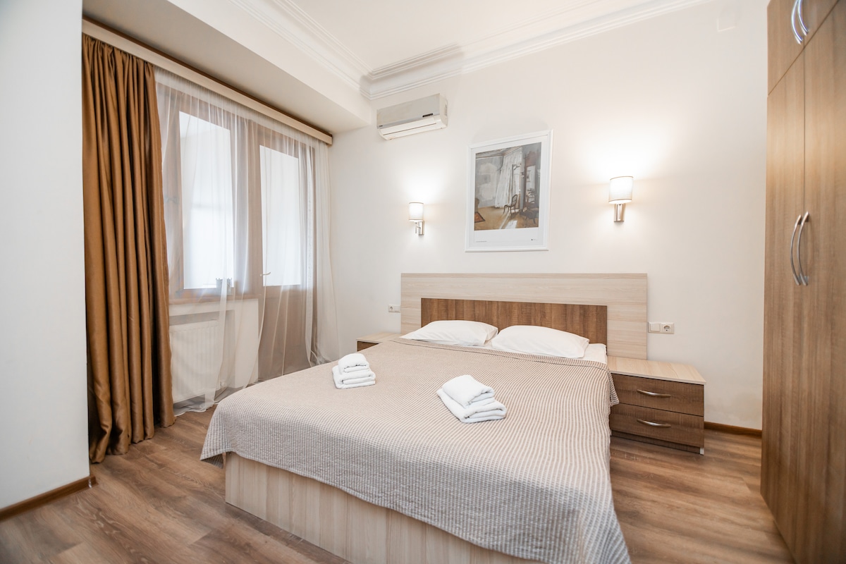 The loft type apartment is located in the cultural heritage building in the center of Batumi. The loft has a large terrace full of exotic plants where you can have a pleasant breakfasts and relaxing evenings. It takes max 10 minutes time (1 km of walking distance) to the beach passing by Nurigeli Lake. Large space is filled with lots of sun light and fresh air. Loft especially will be enjoyed by family (parents plus two kids), ideal for three friends and couples.