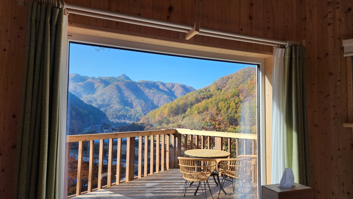 {Family group private pension} Log 2-spratni privatni pansion s pogledom na planine i doline Hongcheona, pokrajina Gangwon