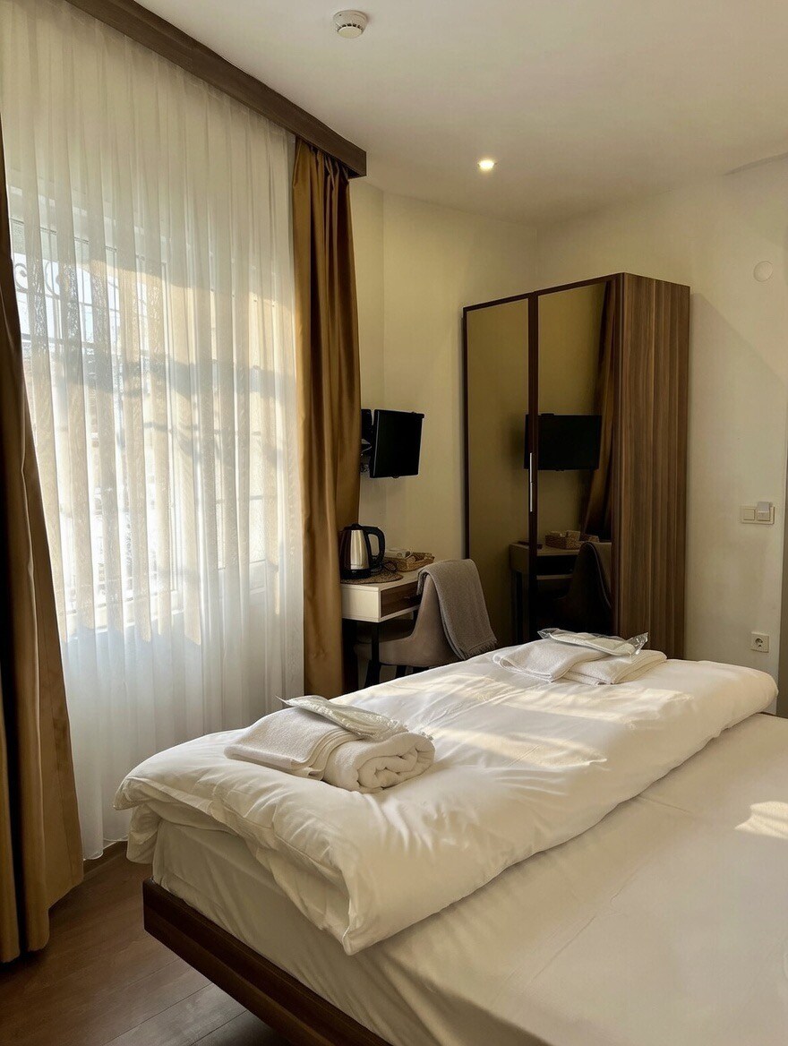 You will have a very pleasant time in this cute terrace studio flat, which is in the most central point of Istanbul, in a quiet wonderful location and carefully prepared with its newly completed restoration. Our room's entrance in 4nd floor, don't elevator and a small spacious area. Our room has 1 double bed, 1 single sofa bed, 1 kitchen, 1 bath and a table, wifi, smart TV, air conditioning and terrace balcony with amazing view.