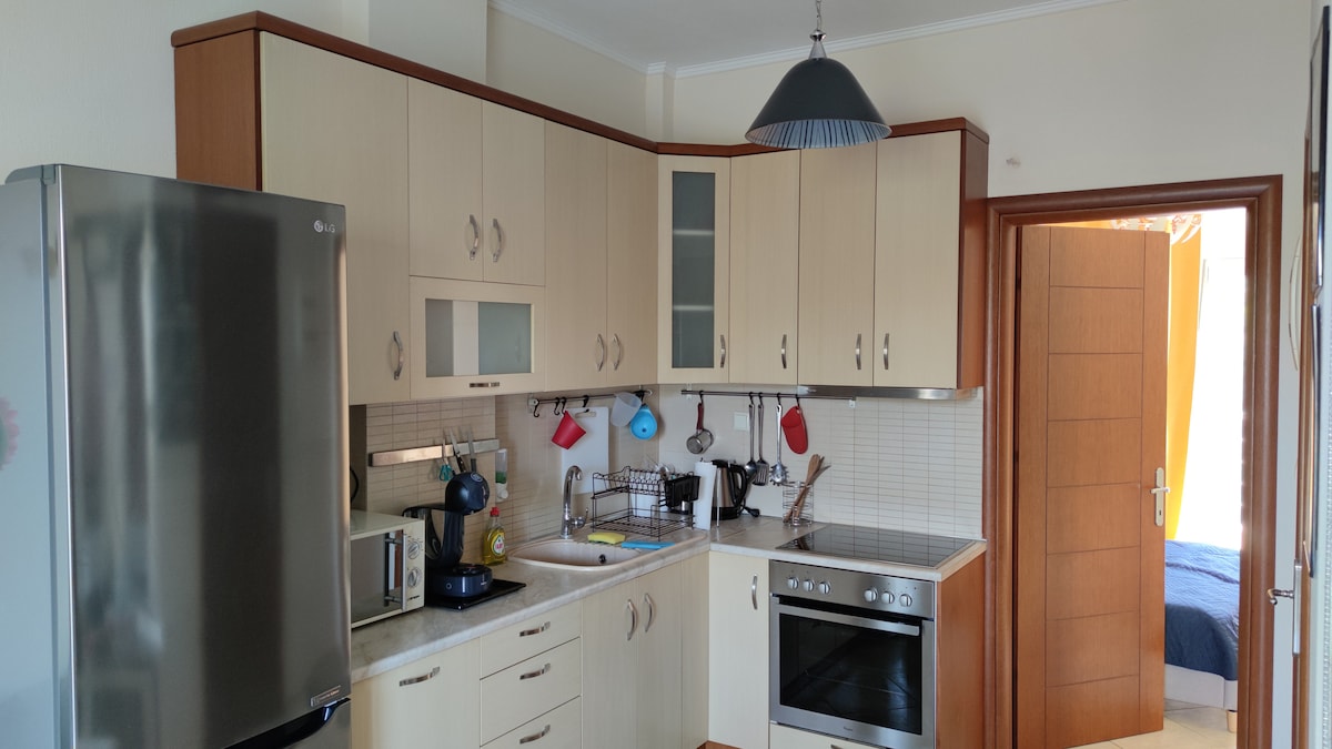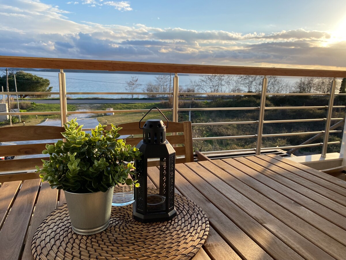 Ovaj elegantan i udoban smještaj idealan je za ljetne praznike dva koraka od mora, s pogledom na pješčanu plažu Kalamitsi Akti s karakterističnim ostrvom. Objekat ima 2 spavaće sobe s bračnim krevetom i bračnim krevetom. Prostrana i moderna dnevna soba - kuhinja i balkon s pogledom na more, kao i privatnim parkingom. Obala ima restorane, supermarkete, vodene sportove i školu ronjenja na pješačkoj udaljenosti.