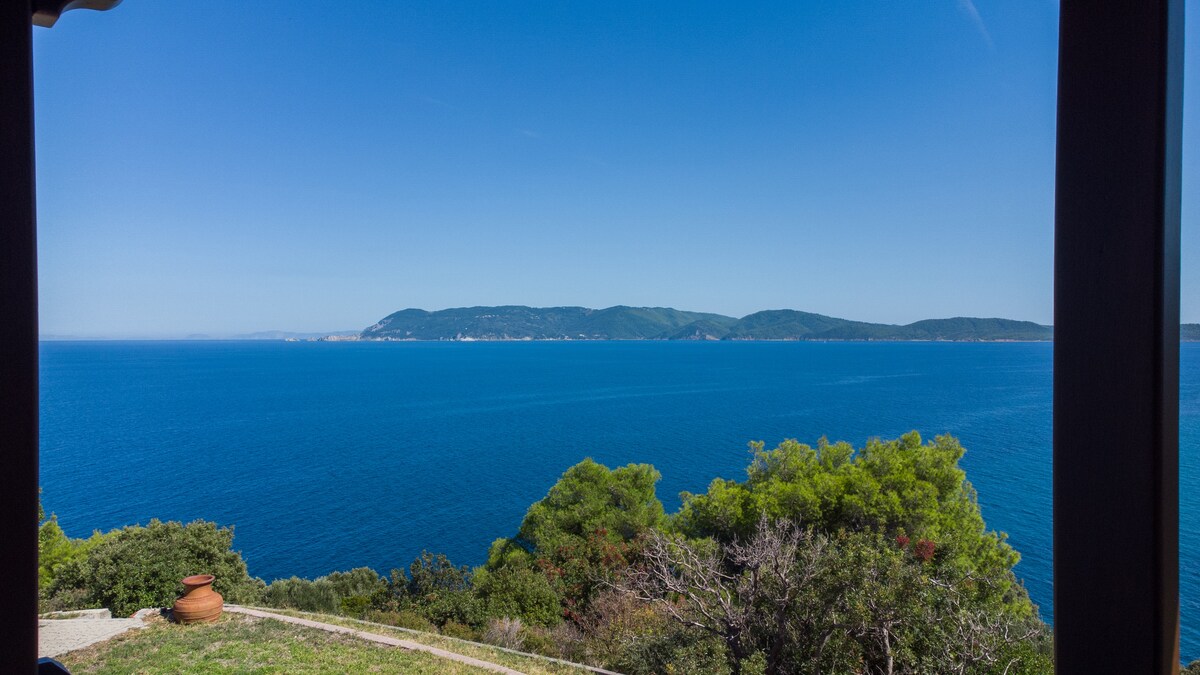Vila s pogledom na Skiathos na Pelionu Mortias