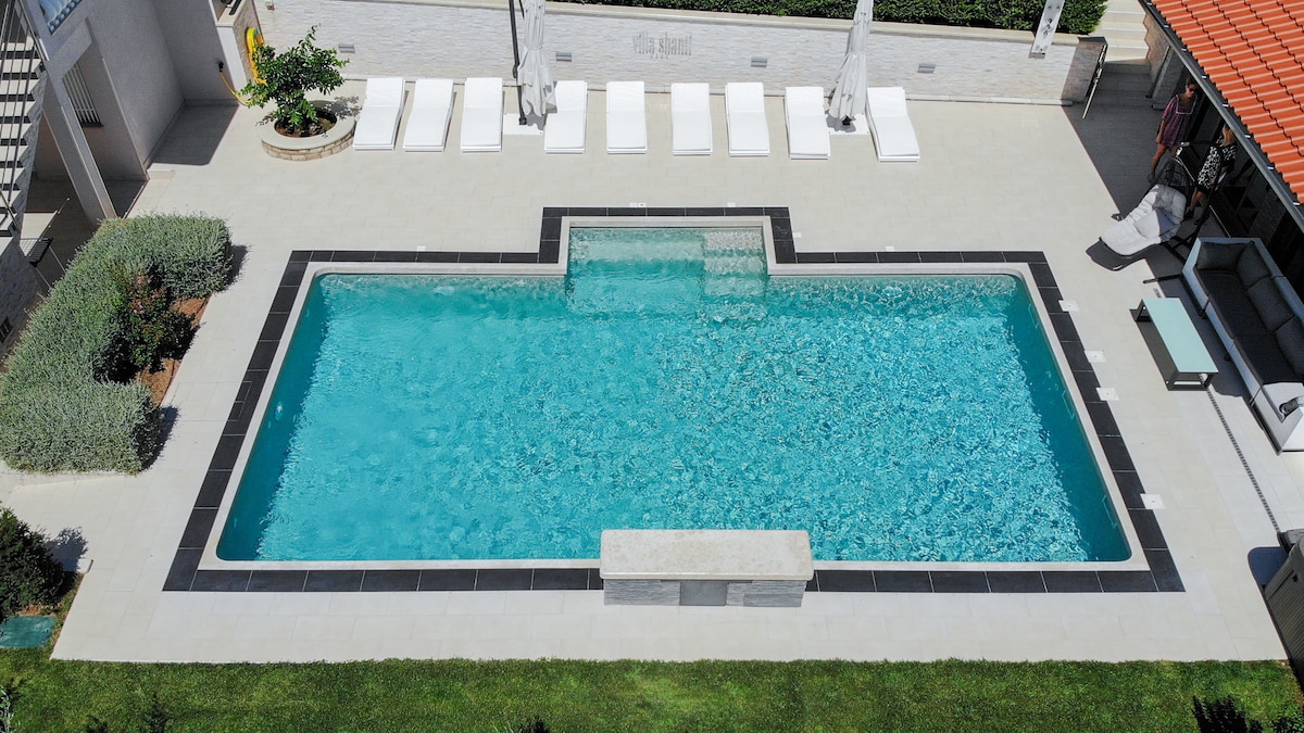 Samo nekoliko kilometara od mora, u mirnom okruženju i na prostranoj parceli, ova dobro opremljena i konceptualno dizajnirana vila nudi najbolje sastojke za istinski opuštajući odmor. Gosti vila će uživati u visokom standardu smještaja u kombinaciji s mnoštvom aktivnosti na licu mjesta za vašu najbolju zabavu i opuštanje. U kombinaciji s izvanrednim beskonačnim bazenom od 75 m², kao i hidromasažnom kadom s veličanstvenim pogledom na more, možda ćete odabrati da uopće ne napuštate vilu! Za vašu najbolju zabavu i opuštanje, vila je opremljena igraonicom s biljarom za tinejdžere i odrasle, igralištem za djecu i dnevnim boravkom za cijelu grupu. U najbližem području možete pronaći prekrasne šljunčane i stjenovite plaže, a samo brza vožnja od 1 km odvest će vas do male šarmantne luke Trget, nudeći izlete brodom i prekrasne riblje restorane.