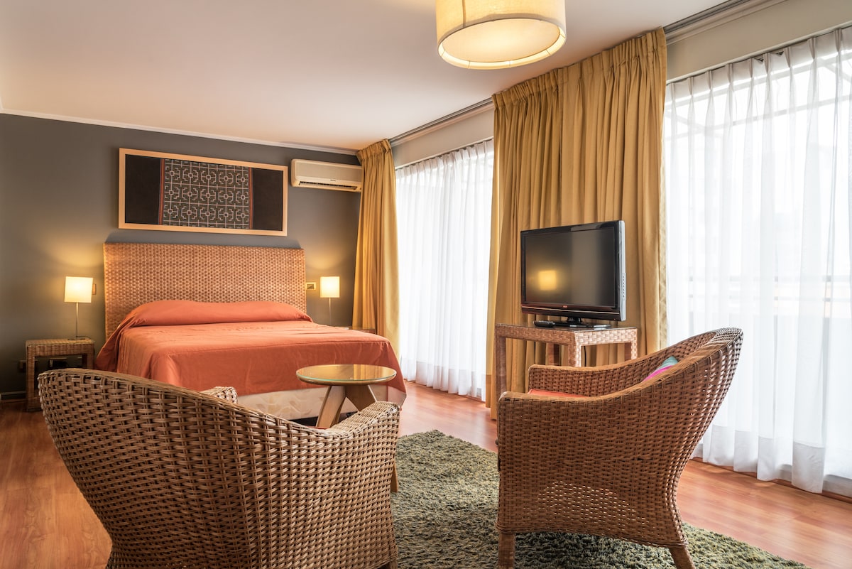 Uživajte u nenadmašnoj i udobnoj lokaciji stana u srcu četvrti Providencia. Idealno za poslovna putovanja, medeni mjesec ili romantična putovanja. Tih i siguran sektor, u blizini poznatih restorana, trgovačkog centra Costanera Center i malih prodavnica. Klima uređaj | WI-FI internet | Bazen (Dic-Feb, u zavisnosti od dostupnosti) Metro 3 minute hoda, Costanera Center 15 minuta, U blizini restorana, parkova i još mnogo toga! Nema parkinga.