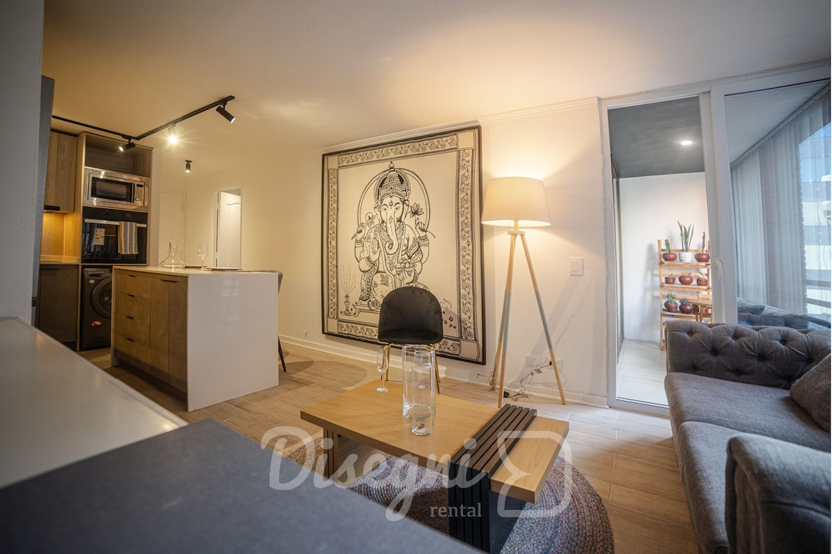 Moderan i svijetao stan s prirodnim stilom i odličnim sadržajima. Smješten u srcu Barrio el Golf, nekoliko koraka od metroa, ovaj prostrani i udobni stan vam garantuje izuzetnu povezanost, u kombinaciji s mirom i udobnošću koju tražite za svoj boravak. Istaknuti sadržaji: Veliki bračni krevet, opremljena kuhinja, moderno kupatilo, udoban prostor za sjedenje s TV-om, klima uređaj, WI-FI internet, bazen, Quincho i vešeraj u zgradi.