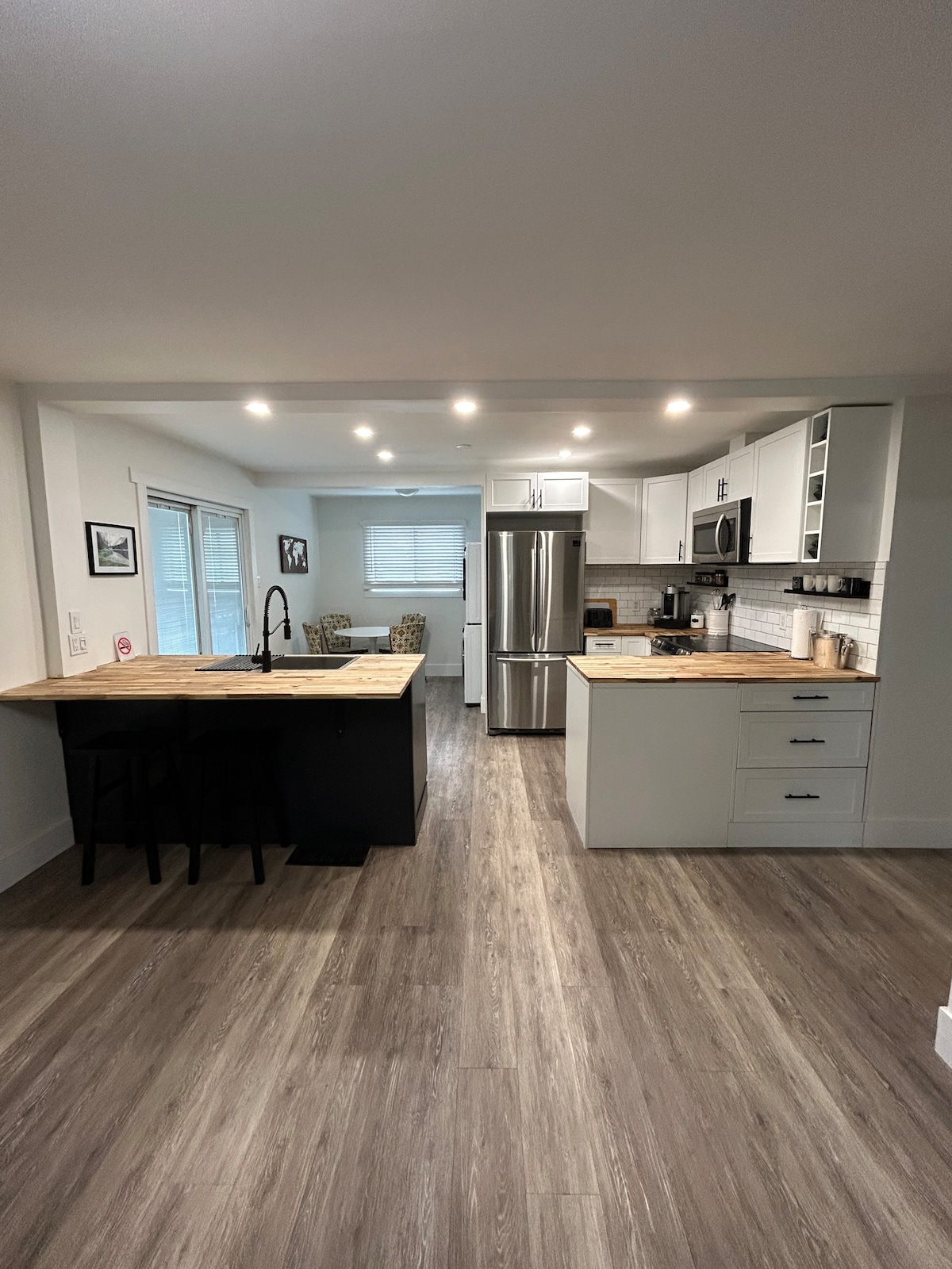 Mirno i udobno mjesto za boravak u prijatnom okruženju. Cijeli apartman za goste dizajniran za svakodnevni život i opuštanje s posebnim radnim prostorom. Samo 2 min od Hwy 102 koja vodi do trans Canada Hwy 11-17 . Grijani porculanski pod u cijelom prostoru, potpuno opremljena kuhinja s kvarcnim pultom, ultra modernim, velikim kupatilom, udobnim bračnim krevetom i izvanrednim pogledom sa svakog prozora. Atraktivan sedmični i mjesečni popust. Preferirani izvođači/radni profesionalci