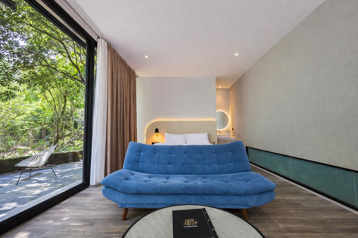 Smještena duboko u bujnoj šumi, ova moderna vila u brvnari nudi mirno utočište u kojem se priroda i moderan dizajn savršeno stapaju. Okružena visokim drvećem i bujnim zelenilom, vila djeluje osamljeno, ali ugodno. Vila ima prostor za goste da uživaju u doručku/večeri u vanjskom restoranu ukrašenom živopisnim zelenilom. Velika klizna staklena vrata u sobi omogućavaju ulazak prirodnog svjetla Idealno za parove, male porodice / svakoga ko traži mir, privatnost i povezanost s prirodom.