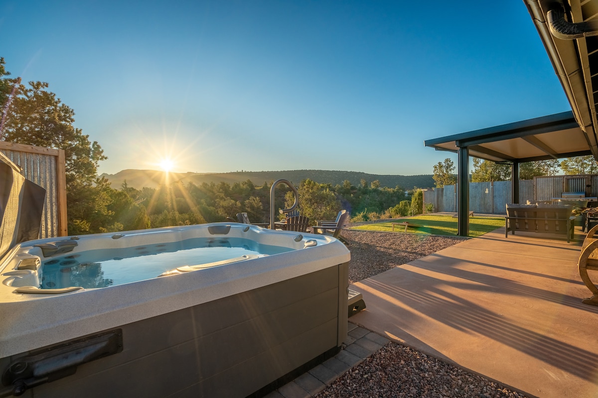 Red Rock Roost, Sedona • Nekoliko minuta do legendarnih staza: Vražji most, kanjon Boynton, pećina Birthing i još mnogo toga • Uronite u masažnu kadu ili se opustite pored ognjišta s pogledom • Staza iza kuće za planinarenje ili vožnju biciklom • Epski pogledi na Cathedral Rock, Thunder Mountain, Coffee Pot Rock • Udobno i prostrano za porodice i prijatelje • Pogodno za pse (2 psa uz naknadu, detalji u kućnom redu, dvorište NIJE ograđeno, psi moraju biti navedeni u rezervaciji)
